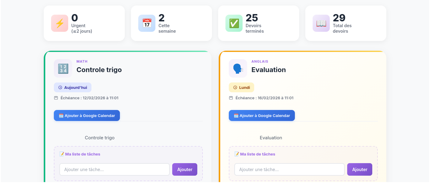 Never miss a deadline again. Organize your assignments with smart filters, priorities, and automatic Google Calendar integration.