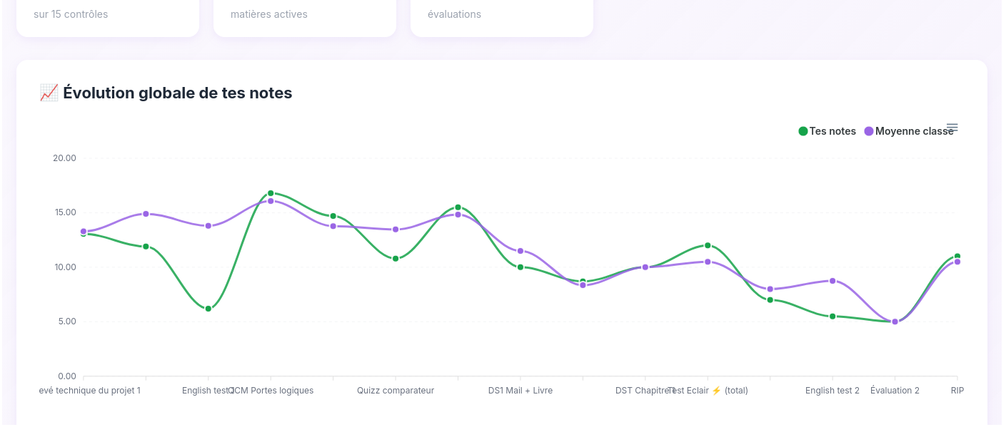 Get a complete overview of your academic performance with interactive charts, trend analysis, and detailed statistics by subject.
